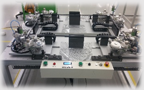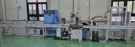 – 양극(+), 음극(-) 극판이 만들어진 Cell에 Tap을 용접한 다음 AL Pouch로 외장을 만들어 전해액을 주입하여 완성품을 만드는 공정 – 구성 : Loader, Tap Welding, Cell Ass’y, EL Filling, Wetting, V-Sealing, Unloader